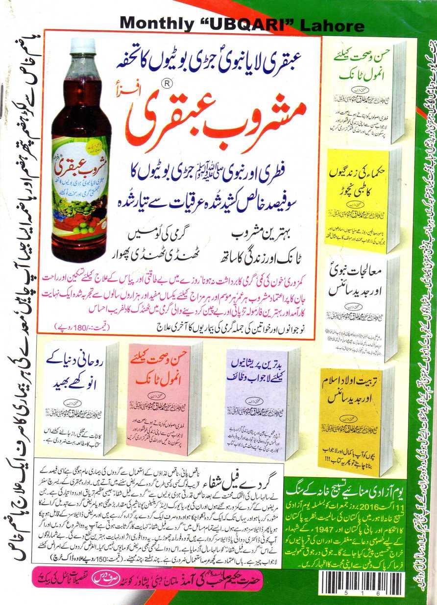 Back Page Ubqari Magazine July 2016